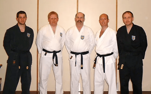 Romsey Adult Instructors 2001: Jamie Porteus stopped because his preference for playing football overtook martial arts. Neville Locke was also one of Ray Wood’s Southampton black belts, but he retired from Romsey and martial arts a few weeks after I joined. John Marshall was an ex-Gojo Ryu Karate but who then moved away. Initially, John took me through the Romsey syllabus and Katas. Jim Dalton started with freestyle Karate but was a soldier, so he was posted away for long periods.